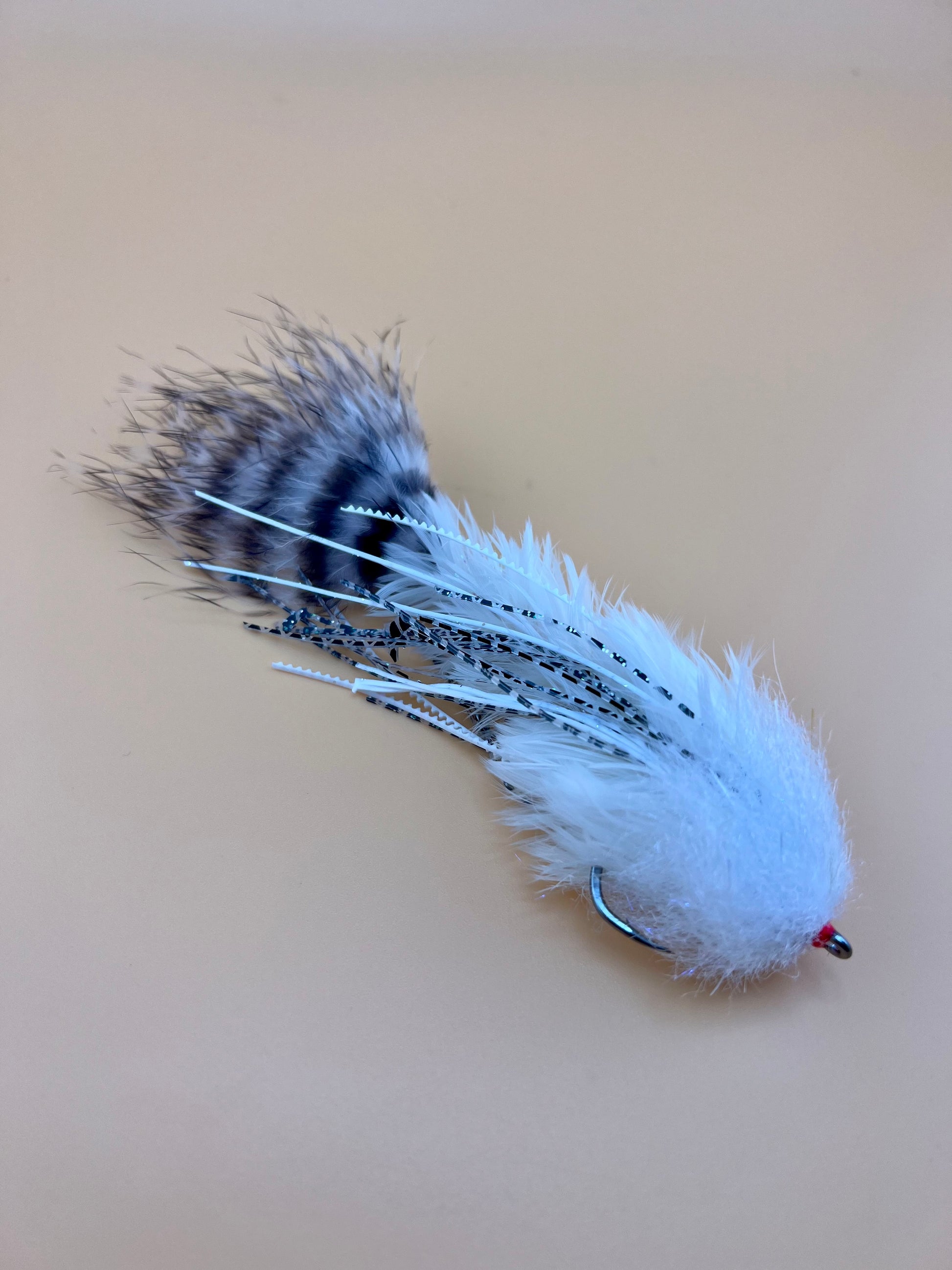 Schultz’s Leggy Boi Game Changer in White. Tied with Whiting American Hen saddle.